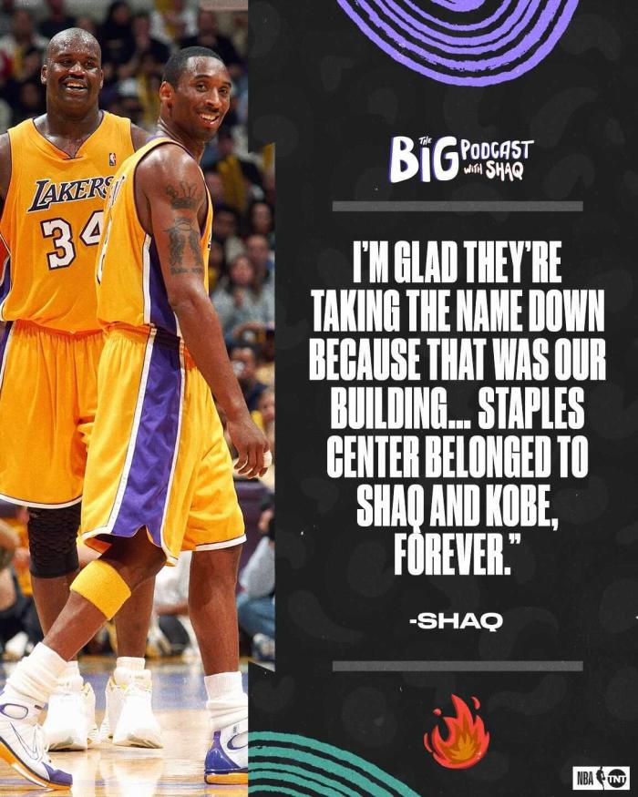 24直播网12月10日讯 湖人和快船共有的主场斯台普斯已经确定更名,而且这座球馆上方的标志已经被拆除,对于斯台普斯更名这件事,湖人名宿奥尼尔在节目中表示:我很高兴他们换掉这个名字,因为那是我们的主场,斯台普斯永远属于我和科比。