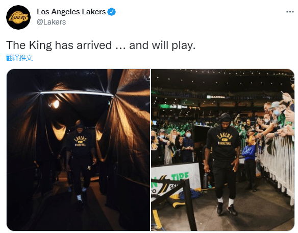 24直播网11月20日讯 ,洛杉矶湖人官方正式宣布詹姆斯复出,湖人官推晒出詹姆斯入场照,并且写道:国王已经抵达,并且会出战。