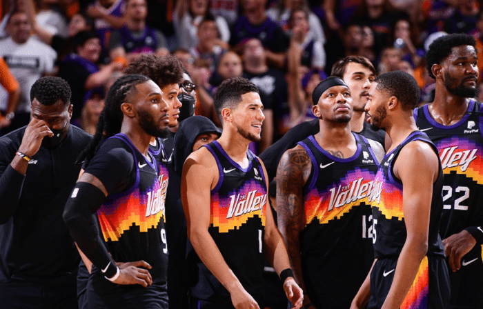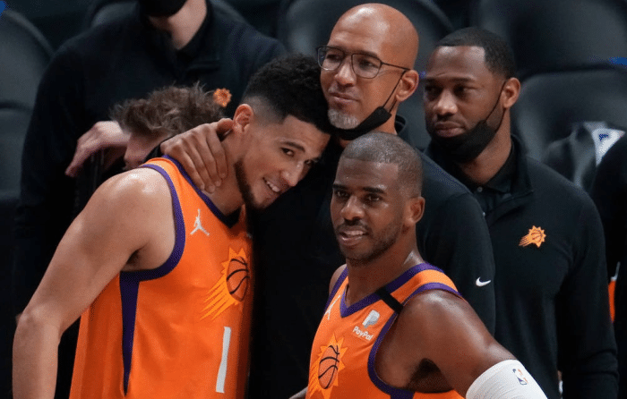 24直播网10月17日讯 NBA季前赛落下帷幕,20号,新赛季将正式开启。上赛季太阳距离捧起总冠军奖杯只差两场胜利,他们淘汰了湖人,横扫掘金,击败快船后,倒在雄鹿脚下。今年夏天,保罗降薪续约,4年1.2亿美元,此外太阳签下佩顿、麦基等人,保留了球队主力框架,但是现在艾顿的续约出现了问题,太阳老板并不认可艾顿值一份顶薪价格,太阳如果处理不好这件事,恐怕新赛季会竹篮打水一场空。美媒《露天看台》专栏记者扎克巴克利分析,太阳完全可以放手一搏,打包状元郎艾顿、克劳德等筹码报价唐斯!