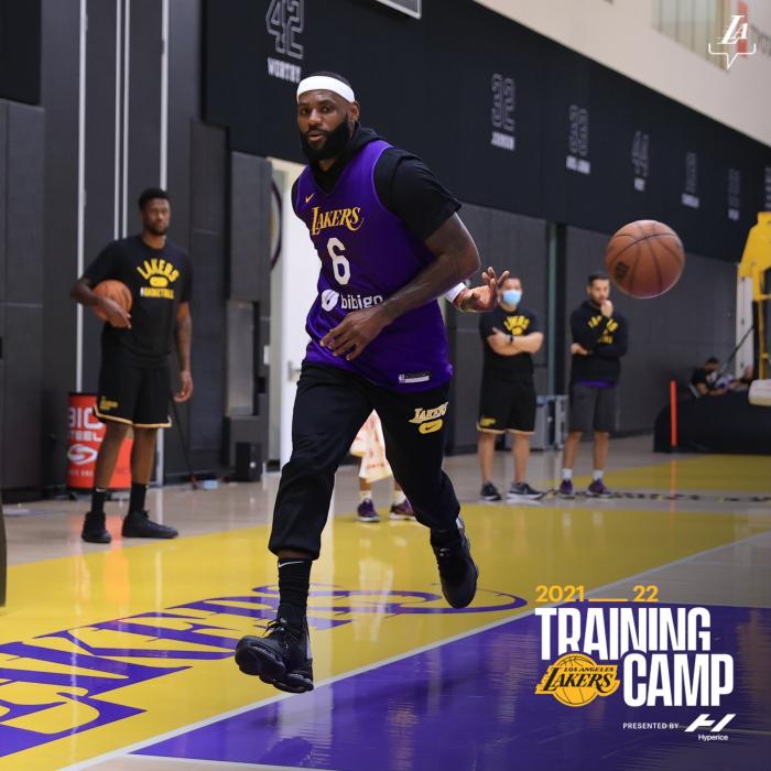 24直播网10月01日讯 ,湖人训练营第二天,洛杉矶湖人队晒出众球员的训练照,6号发带詹回来了;36岁詹姆斯戴着发带且身披6号战袍参加训练,训练中湖人队笑声不断,队内氛围特别好,但训练强度很大,詹姆斯把嗓子喊哑了。