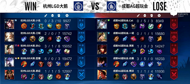 杭州LGD大鹅禁用:阿古朵、大乔、 镜、暃