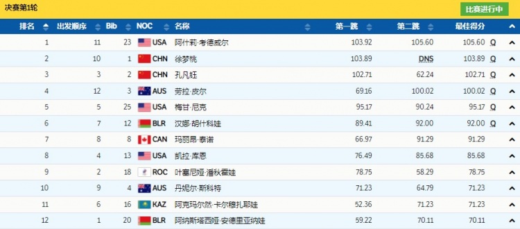 随后徐梦桃在锁定第二轮资格后直接选择跳过第二跳。最终,徐梦桃与孔凡钰以第二、三名成功晋级第二轮决赛!