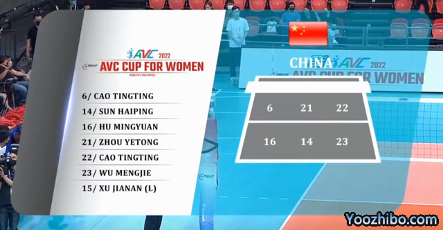 中国女排首发阵容:主攻:庄宇珊、吴梦洁、副攻:胡铭媛、曹婷婷、接应:周页彤、二传:孙海平、自由人:许嘉楠