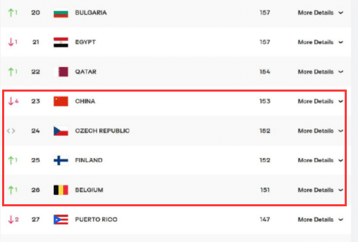 中国男排在本届世锦赛表现不佳,世界排名的积分如今实时变动,吴胜率队两连败之后,每一场都是0-3惨败,中国男排的排名分骤减20.31分,现在的积分是153分,位居世界第23名。身后的捷克和芬兰只比中国男排少1分,比利时和中国男排相比少2分。所以一旦中国男排小组赛末战不敌意大利,继续惨败的话,积分和排名将进一步下滑,奥运资格赛的门票或许会不保。
