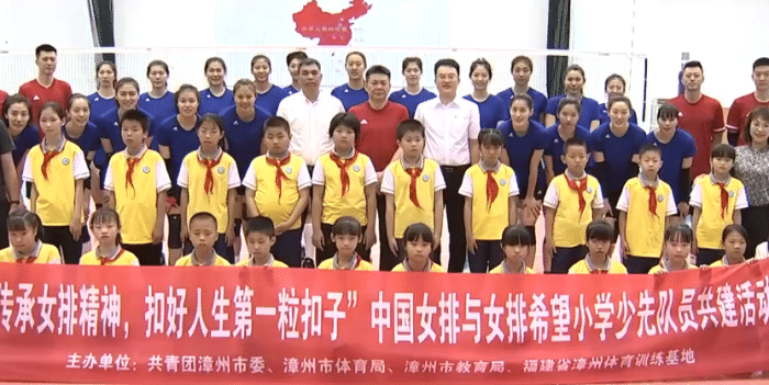 在5月21日上午,中国女排全队参加活动,与女排希望学少先队员在漳州体育训练基地举行共建活动。秉承着“传承女排精神,扣好人生第一粒扣子”理念,来自中国女排华安县先锋希望小学的20名少先队员现场感受中国女排的顽强拼搏精神。这些少先队员也给中国女排送上了自己准备的礼物,非常暖心。