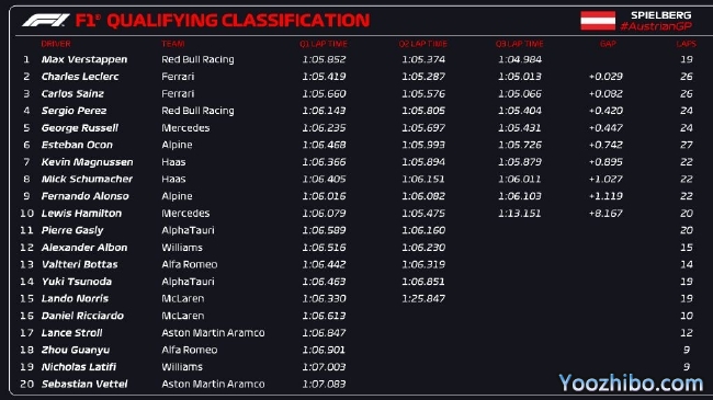 24直播网讯 北京时间07月08日,2022年F1奥地利大奖赛排位赛在红牛环赛道结束,红牛车队维斯塔潘最后时刻绝杀法拉利车队勒克莱尔夺得杆位。