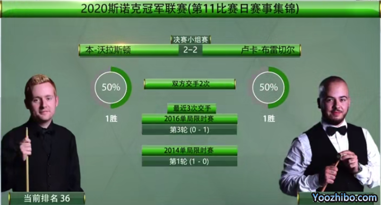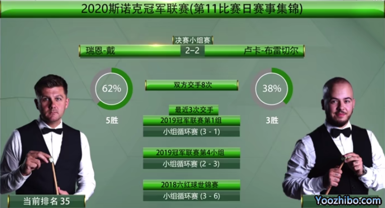 第二场布雷切尔对战瑞恩-戴,双方历史交手8次,布雷切尔3胜5负,本场手感依旧良好,以2-2打平,获得1积分。