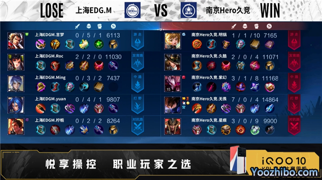南京Hero久竞选用:项羽、露娜、沈梦溪、伽罗、太乙真人