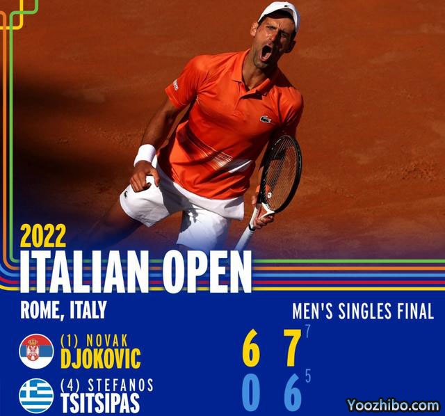 24直播网讯 北京时间5月15日,2022年ATP1000罗马大师赛结束男单决赛争夺。世界第一德约科维奇以6:0/7:6(5)直落两盘战胜赛会4号种子西西帕斯,夺得个人赛季首冠,这也是他的第38个大师赛冠军。