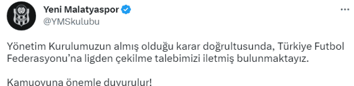 24直播网讯02月12日耶尼马拉耶士邦表示,在这个痛苦万分的时刻,俱乐部已经没有心思顾及足球,因此根据董事会决定,俱乐部向土耳其足协递交退出土甲联赛申请。