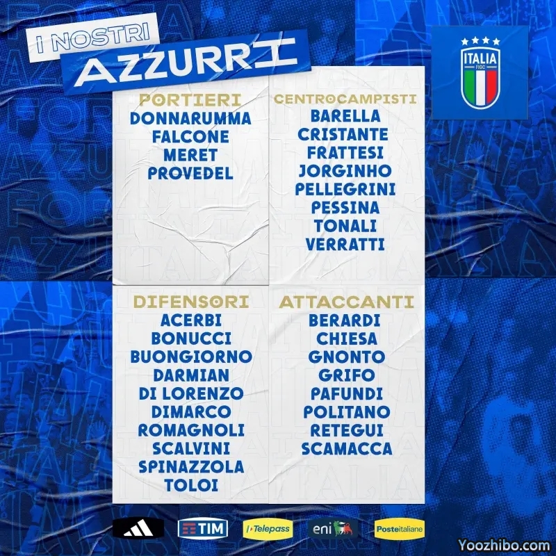 24直播网03月18日讯 意大利公布了欧预赛对阵英格兰、马耳他的30人名单,具体如下。