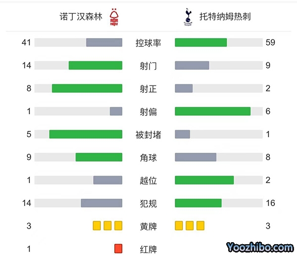 全场比赛结束,最终热刺0-2诺丁汉森林。